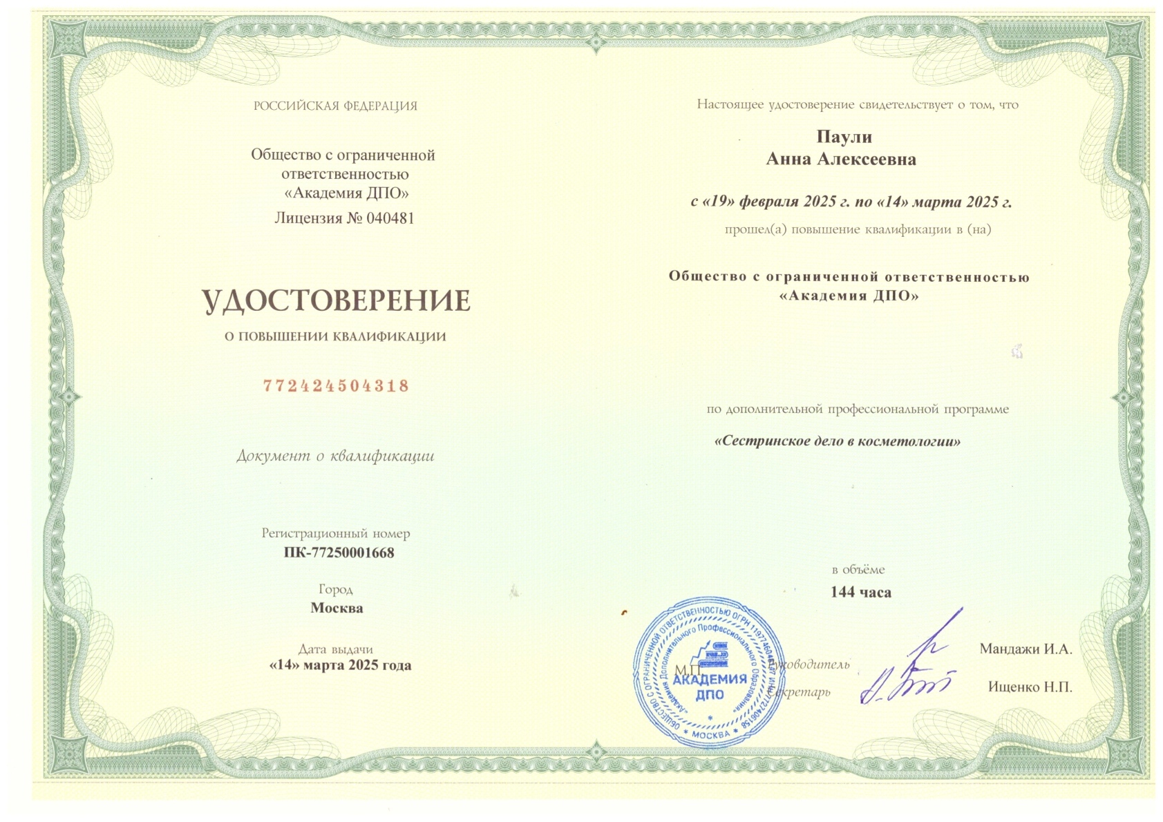 - Мезотерапия и биоревитализация лица, тела и головы (Академия научной красоты);